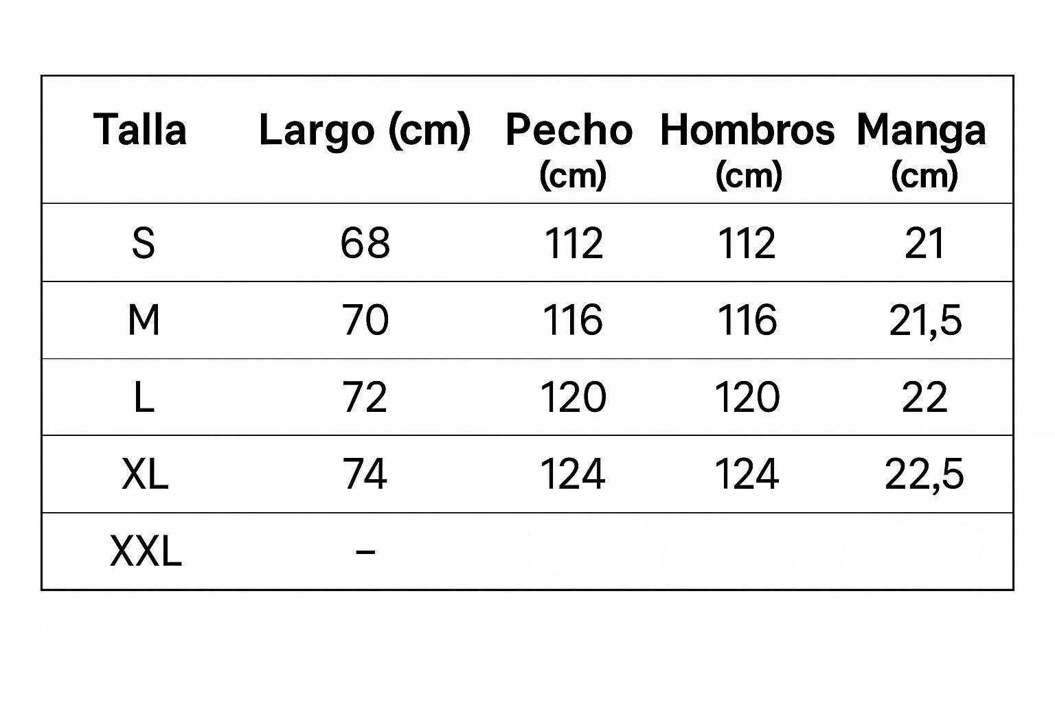 1. Revisa cuidadosamente la tabla de tallas antes de comprar el artículo.