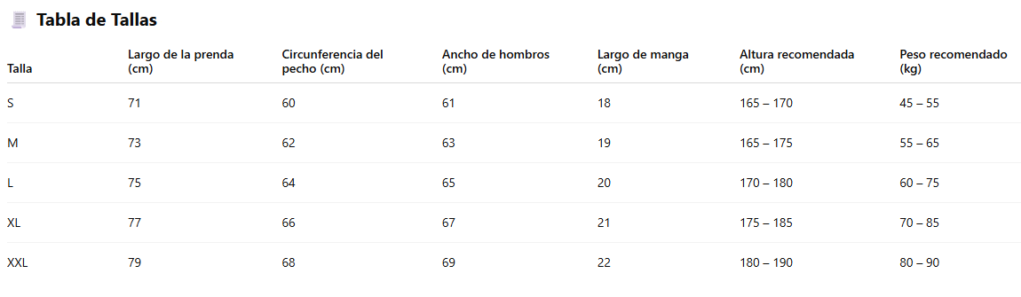 1. Revisa cuidadosamente la tabla de tallas antes de comprar el artículo.