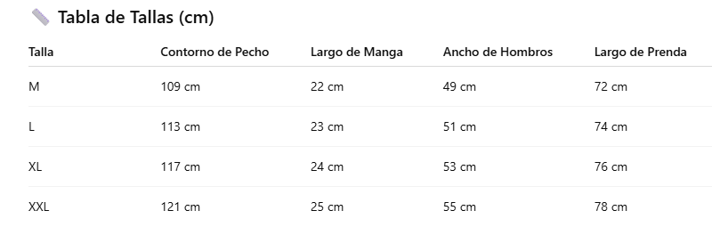 1. Revisa cuidadosamente la tabla de tallas antes de comprar el artículo.