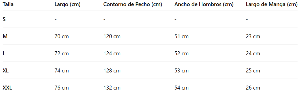 1. Revisa cuidadosamente la tabla de tallas antes de comprar el artículo.