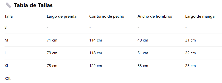 1. Revisa cuidadosamente la tabla de tallas antes de comprar el artículo.